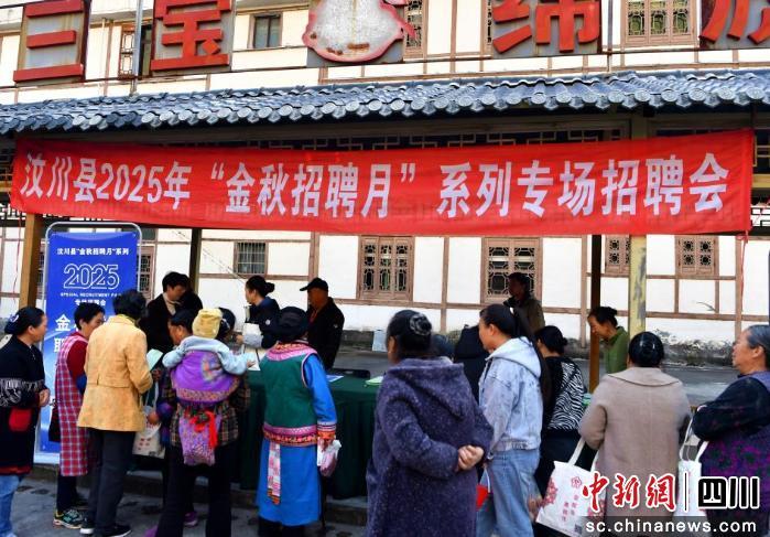 中新网四川新闻10月31日电(伍排勇 陆李帷韬)金秋送岗暖人心,精准服务促就业。10月30日,汶川县2025年“金秋招聘月”系列活动走进绵虒镇,汇聚省内外多地70余家优质企业,将805个涵盖多领域的岗位送到群众“家门口”,为求职者与用工企业搭建高效对接平台。