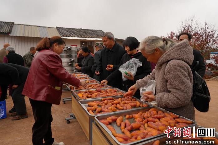 中新网四川新闻11月5日电 (李静洁 梁霭彬)近日,绵阳市游仙区魏城镇栖凤村举行首届“烟薯丰收节”,当地村民们齐聚一堂,在赏演出、蒸薯糕、品烟薯的欢乐氛围中感受丰收的喜悦。