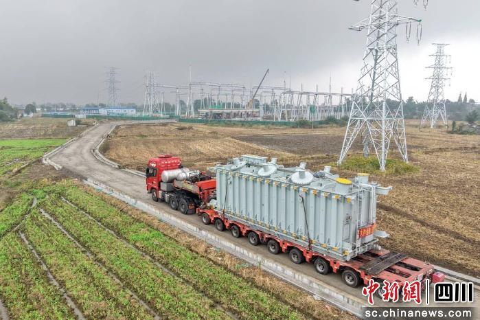 中新网四川新闻11月5日电 近日,德阳绵竹市220千伏齐天变电站首台主变压器顺利就位,标志着该变电站已全面进入设备安装“冲刺”阶段,后续各项工作也正安全平稳、有序推进。