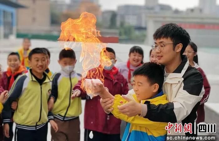 在“烈焰火掌”实验环节,当老师手掌瞬间燃起火焰却毫发无伤时,孩子们激动地欢呼起来……近日,一场“科学秀场”在自贡市贡井区蓆草田小学上演。本次活动拉开了省级城乡社区治理“创特色”项目进校园系列科普活动的序幕,这也是贡井区探索“五社联动”机制下以社会工作方法赋能青少年科普教育的创新实践。
