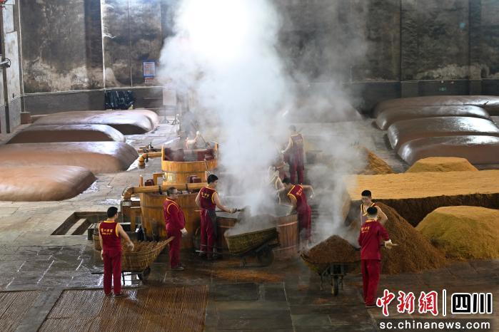 11月14日,位于四川省泸州市的“1573国宝窖池群”内,工作人员忙着酿造工作。始建于公元1573年的“1573国宝窖池群”由舒承宗开凿,自开创之日起,450余年来持续酿造,至今从未间断,这里也是中国现存建造最早、持续使用时间最长、原址原貌保存最完整的原生古窖池群落。