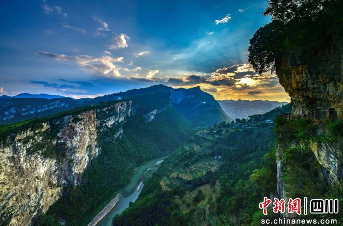 精品点2:鸡鸣三省大峡谷。鸡鸣三省大峡谷位于赤水河与果哈河交汇处的叙永县水潦彝族乡赤水河村,坐拥万亩花海(包括冰脆李、桃花、油菜花),是四川省百大最美景观拍摄点之一。此处是云、贵、川三省交界地,山峦环绕、峰峦耸立、水清秀美、深谷林幽。汛期时,峡谷内飞瀑湍流,气势磅礴;枯水期,赤水河清波荡漾,碧潭细浪,涓涓流淌。游客还能欣赏到雾溢长河、山缠雾带、峡谷涨水、斜阳穿峡、跨省彩虹等巧夺天工的自然奇观。在这里,游客可尽情观山、赏水、览花、探峡谷、眺赤水河源头三省交汇地。