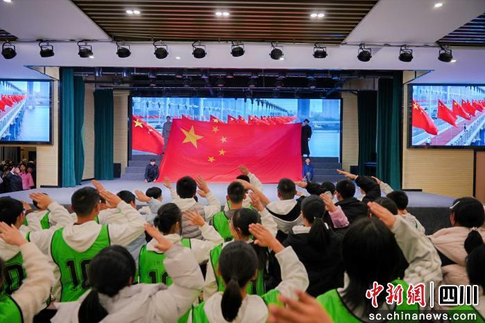 中新网四川新闻12月10日电 (李睿)12月9日晚,绵阳游仙中学“赓续报国志奋进正当时”纪念“一二·九”学生爱国运动校园文化体育艺术节正式拉开帷幕,“青春的誓言”文艺汇演同步燃情上演,新一批团员在现场完成了一场特别的入团宣誓仪式,209名师生的参演将红色精神与青春力量交织在校园舞台。