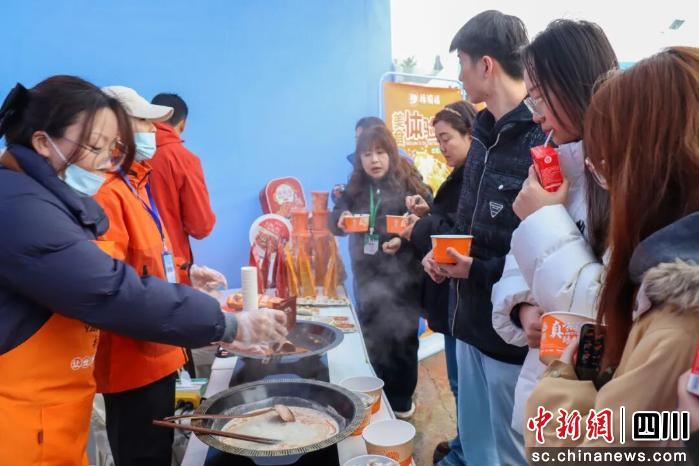 活动现场的主题集市区内人声鼎沸,50余家郫都本土知名企业与特色商户齐聚,“一镇一品”“知名企业”“创意集市”三大功能分区有序排布、各展风采,空气中交织着美食香气与欢声笑语。