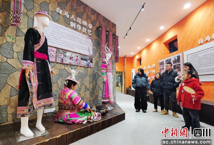 在非遗服饰旅拍馆,游客们兴致勃勃地试穿起白马藏族、羌族等民族服饰,用镜头定格穿越时光的瞬间。“我一直对白马藏族的服饰很感兴趣,今天终于有机会穿上,拍照特别出片。”身着白马服饰的游客李女士兴奋地向同伴展示照片。