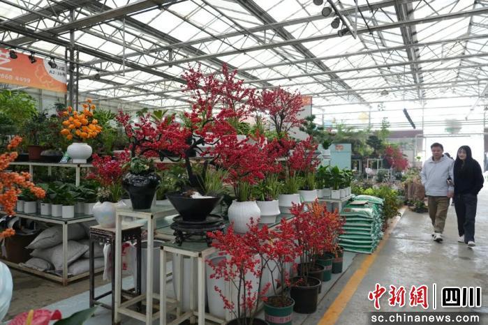 “为了迎接元旦和春节销售旺季,我们提前备货8万件,包含蝴蝶兰、冬青、造型杜鹃、富贵子、火棘果等品类。”魏瑶利介绍,园区不仅通过硬件升级优化购物体验,还搭建了线上线下融合的销售渠道,借助直播带货等方式,让郫都花卉销往全国各地。
