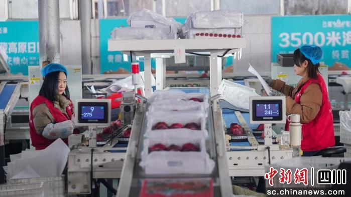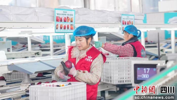 中新网四川新闻1月7日电 (刘忠俊 邓凌瀚)“机器一转,苹果分级就搞定!”1月7日,眉山市彭山区黄丰镇丰华社区分拣中心内一派繁忙,阿坝小金县新品种苹果正通过智能分拣线完成清洗、分级、包装全流程处理。这套“全能型”设备打破了当地以往仅分拣柑橘的局限,吸引各地商户合作,让高原优果直达北上广深高端市场,为集体经济注入强劲动力。