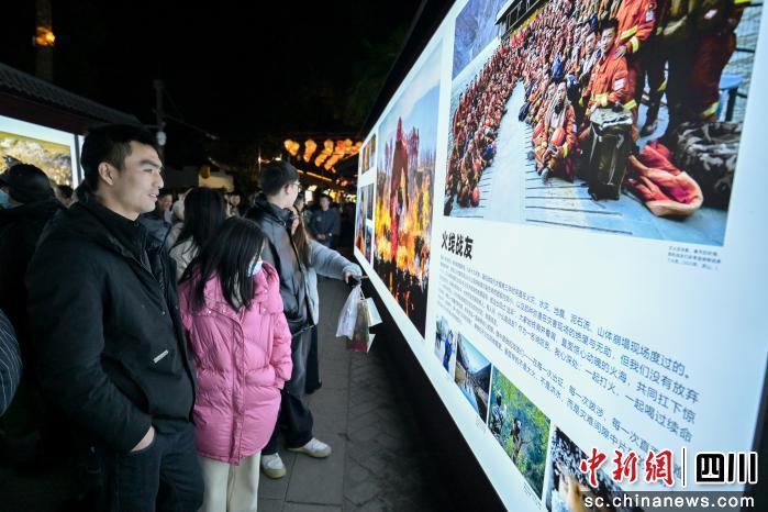 中新网四川新闻1月25日电 (记者 刘忠俊)1月25日晚,四川省摄影家协会“攀峰计划”(刘应华导师班)学员摄影汇报展“萤火·追光”,在成都锦里文化旅游街区启幕。百余幅作品以灯箱形式沿街陈列,走出传统展厅、融入古街烟火,本次展览免费向公众开放并将持续至2月12日。
