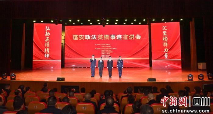 中新网四川新闻1月29日电 (周亮)近日,蓬安政法系统英模事迹宣讲会在南充启睿实验学校举行。此次宣讲会以“弘扬英模精神,汇聚榜样力量”为主题,将聚光灯投向基层一线。活动通过身边同事深情的讲述,还原了公平正义背后那些具体而微、充满温度的日常坚守,呈现出一幅新时代法治建设的生动群像。