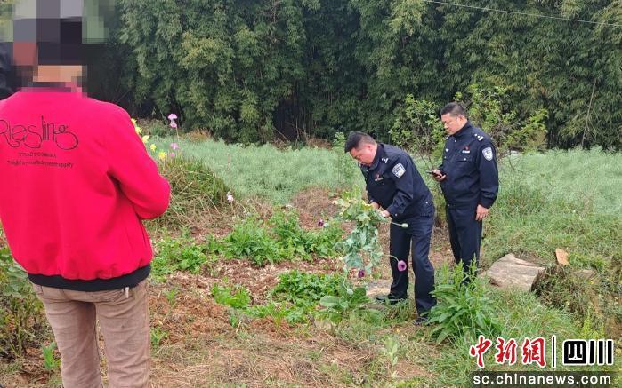 中新网四川新闻4月10日电 (杨俊 陈茉莉)“在镜头里,十几株叶片呈锯齿状,顶端缀着紫色花朵的植物,看起来格外扎眼……”近日,自贡市荣县公安局禁毒大队、反恐特警大队组成的无人机联合巡查小组,在对高山、新桥、度佳等镇的偏远山林、农家庭院进行“地毯式”扫查时,精准锁定了疑似罂粟的一片植物。