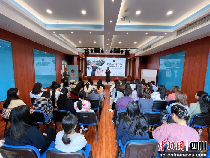 中新网四川新闻4月10日电 绽放“她”力量,共赴“新”未来。4月9日,泸州市江阳区新联会举办的“职场女性工作与家庭融合之道”专题讲座在区新联会会员企业——百思素质成长中心举行,吸引了来自教育、传媒、艺术等领域的50多名女性代表参与。
