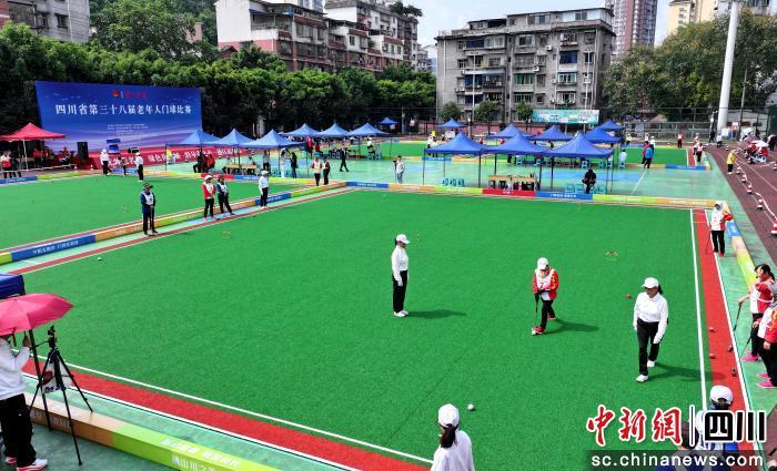 中新网四川新闻4月15日电 (王超明 杨茂 姚茂璇)4月15日,四川省第38届老年人门球赛在泸州纳溪正式开赛,来自全省各地的49支队伍共392名老年门球运动员齐聚一堂,挥杆对垒,尽显银发健儿的健康风采与运动活力。