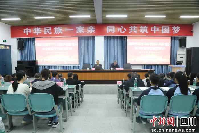 中新网四川新闻4月20日电 (黄云)为扎实推进校园铸牢中华民族共同体意识宣传教育,近日,由德阳市民宗局、市教育局、市中华职教社联合主办的高中阶段学校巡回宣讲活动首场宣讲在德阳市黄许职业高级中学校举行。