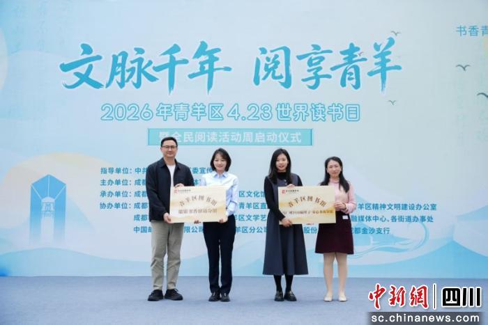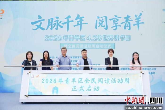 中新网四川新闻4月23日电(陈扬善 陈静)春风拂卷青羊,文脉浸润书香,在第31个“世界读书日”与首个“全民阅读活动周”到来之际,22日,2026年成都市青羊区“全民阅读周”启动仪式在青羊区图书馆广场举行。