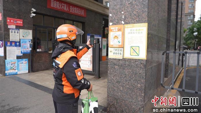 中新网四川新闻4月23日电 (杨洋)近日,在德阳市旌阳区东湖尚嶺小区门口,外卖骑手周安勇熟练地停好电动车,拿着外卖快步走向小区单元楼,完成配送后,他掏出手机扫了扫路边的“旌城小哥码”,随手查看附近的休息点位。