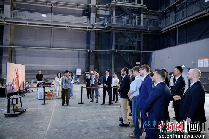 在实地考察走访环节,代表团参观了西部唯一承载两大国家级影视数字创新平台的产业园区——成都影视城和中国首座中欧合作的氢能产业园——东方氢能产业园。与会代表走进虚拟拍摄棚和动作捕捉棚,深入了解郫都影视制作、数字文创领域的特色优势与发展潜力;听取“氢气制—储—加—用”的全链条核心技术研发与产业应用介绍,近距离感受成都郫都打造国家级氢能产业高地的硬核实力与发展蓝图。