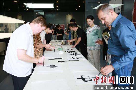 “一撇、一横……”在书法家的耐心指导下,四川农业大学外籍教授UMER KARAMAT认真握起毛笔,在宣纸上写下“中秋”二字。刚来温江工作一个月的他,是第一次体验毛笔书法。“虽然有点困难,但看到自己写出的汉字,感到非常开心,对中国书法文化有了新的认识。”他笑着说,虽然来温江不久,这里生态优美、开放包容的城市环境给他留下了深刻的印象,“我将慢慢感受温江的幸福美好。”