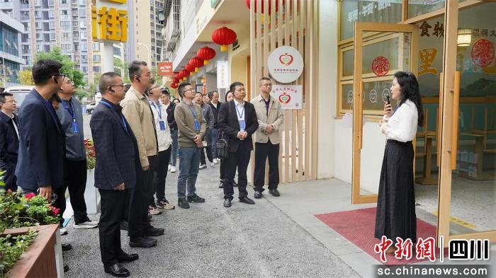 当日上午,参访团一行先后走进游家渡社区、天府家园社区、旭辉党群服务中心、洲际健康城、学府社区党群服务中心,实地察看社区治理、公益慈善、公共服务、文化营造、社区经济等场景。从同善街的便民空间到老旧小区的焕新面貌,从温有根超市的“三区”产品到银发经济服务场景,从零工市场的就业服务到商圈党群服务中心的各类活动,一路走、一路看、一路议,高校智力资源与基层治理场景的深度契合,让大家倍感振奋。