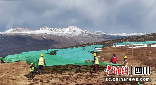 中新网四川新闻6月5日电 (刘扬洋)5日,在海拔4200至4800米的藏东高原,金上川藏段国家水风光一体化示范基地260万千瓦光伏发电项目首个“草甸堆存养护试验区”正式揭牌,标志着全球目前在建单体规模最大“牧光互补”山地光伏项目绿色施工取得阶段性成效。