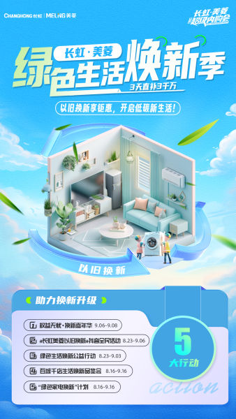 在绿色节能的时代浪潮中,长虹·美菱正以实际行动响应绿色节能号召,启动“长虹·美菱绿色生活焕新季”,携手五大行动,全面助力消费者实现家电以旧换新,共同开启绿色生活新篇章。
