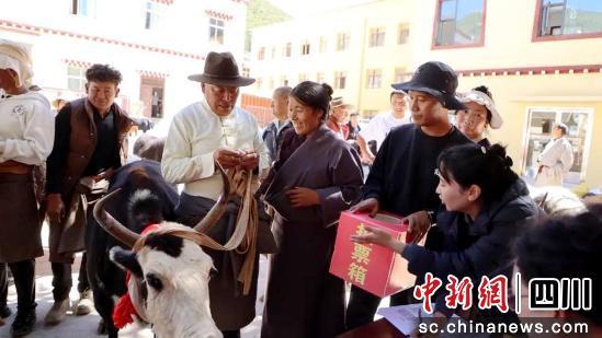 中新网四川新闻9月29日电 (刘忠俊 梁露)“这些牛看着就精神,有了‘活资产’,日子肯定能红火!”近日,在甘孜州白玉县河坡镇产业帮扶牛发放仪式现场,领到牦牛的则吾村村民班鸠如是说。