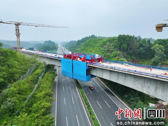 据了解,跨渝蓉高速特大桥位于资阳市乐至县童家镇,全长约1831.17米,是成渝中线高铁控制性工程之一。此次合龙的连续梁为单箱单室、变高度、变截面箱梁,长约273.6米,桥面宽度12.6米,以32°夹角上跨车流量密集的渝蓉高速公路。