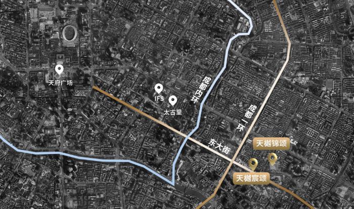 这是成都三千年城址不迁的时空结晶。从蜀王府的皇城旧址(今天府广场),到春熙路、太古里、IFS的商贸巅峰,再到如今汇聚全球高端资源、顶尖生活资源的“西部华尔街”,在“天樾”双子步行可达的范围内,城市的权力、财富与生活中心奇妙叠合。