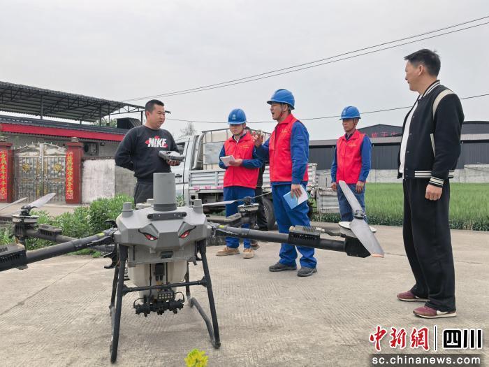 中新网四川新闻4月14日电 近日,什邡市雍城街道花桥村2组的田野间,机器轰鸣声此起彼伏。不远处,一架大型农用无人机正悬停半空,喷洒着绿色的营养液。在这热火朝天的春耕场景中,几名身穿红马甲的国网德阳什邡供电公司方亭供电所的员工格外引人注目。他们手持防外破宣传单,穿梭在作业人群中,目光时刻锁定着天空与地面。这是方亭供电所开展的一次集中宣传行动,旨在春耕大忙时节,将电力设施保护的“安全课”送到田间地头。