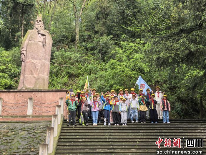 在医务人员的带领下,各族孩子们踏着通往李冰陵的青石台阶拾级而上,稚嫩的脚步踩在斑驳的石阶上,坚定而有力。青石蜿蜒,仿佛接续着两千年前李冰治水的坚毅身影;山风拂面,似有岷江奔涌的回响在耳畔回荡。登顶回望,抚今追昔,李冰所体现的治水智慧与为民情怀,不再只是史书上的墨痕,而成了孩子们眼中可感可触的温暖星光。