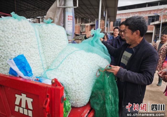 “我今年一共养了30多张蚕茧,大概收入八九万元。今天运了150公斤蚕茧过来,能卖8000多元。养蚕挣到钱了,心情非常不错。”陈龙说道。