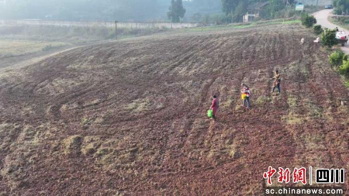 中新网四川新闻11月25日电(吴平华 张凤莉 姚阳)24日,在资阳市乐至县天池街道团店村的富硒小麦试验基地,几名村民正弯腰将拌好的麦种均匀地撒向土地,身后的旋耕机隆隆作响,翻起的泥土将麦种轻轻覆盖。一粒小麦的“三级跳”,正从这里开始。