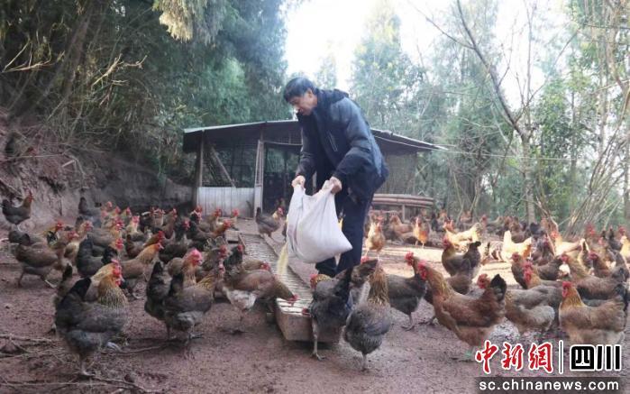 中新网四川新闻1月12日电(吴平华 张凤莉 )近日上午,阳光透过林间枝叶,鸡鸣声回荡在资阳市乐至县高寺镇石堰村的树林中。树下,上千只土鸡正在悠闲觅食,为冬日的山林增添了一派生机。乐至县京川野生动物驯养繁殖有限公司负责人田根柱正弯腰给鸡群喂食:“这批鸡已经养了五个多月,重量在1.5公斤左右,品质不错。”