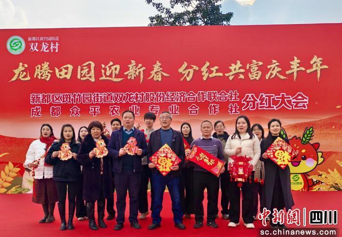 中新网四川新闻2月5日电 2月4日,成都市新都区斑竹园街道双龙村举行2026年度集体经济分红大会。村民们满怀期待、喜气洋洋,有序排队登记、签字领取分红现金,一张张笑脸映照着丰收的喜悦,一声声欢笑传递着共富的温情,成为冬日里双龙村乡村振兴路上的暖心图景。