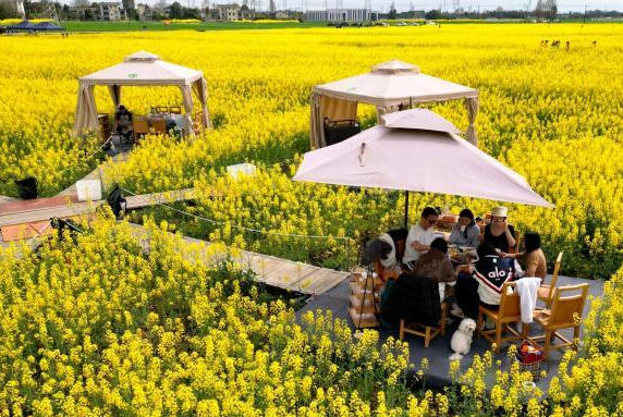 成都“花田火锅”人气旺 民众油菜花海中品美食