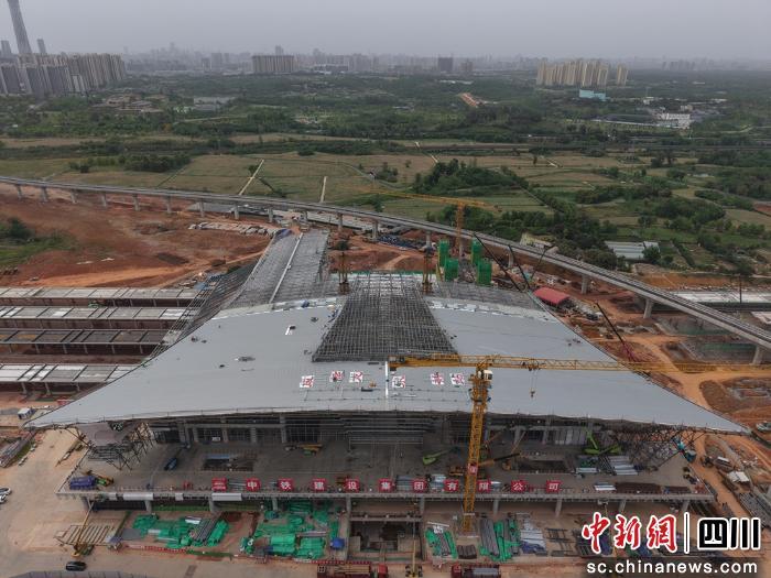 中新网四川新闻4月20日电 (记者 刘忠俊)4月20日,成都龙泉驿站(原十陵南站)站房主体结构顺利封顶。这一重要节点的达成,标志着该项目建设全面转入机电安装、装饰装修及配套工程施工新阶段,为项目如期建成投用奠定了坚实基础。