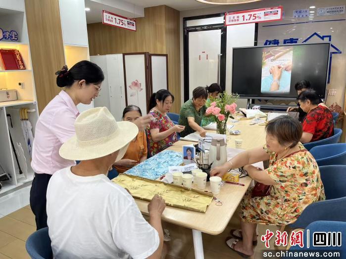 在绵阳分行长虹世纪城社区支行网点里,她和同事们常年组织老年朋友们体验非遗手工、中药手作等,在静谧时光中让大家更好感受中国传统文化滋养。曹鑫回忆道:“隔壁军属社区的王阿姨,网点安愉课堂一节不落,每天早上送完孙子去学校,就马不停蹄来我们这边参加活动。”在今年8月开展的主编工艺课程上,王阿姨认真眯着眼睛认真听讲,动手实践时专心致志,拉着手工老师问问题。课程结束后,王阿姨兴奋地举起自己做的竹节包说:“提着这个包包装点零食和水杯去打麻将,安逸!”