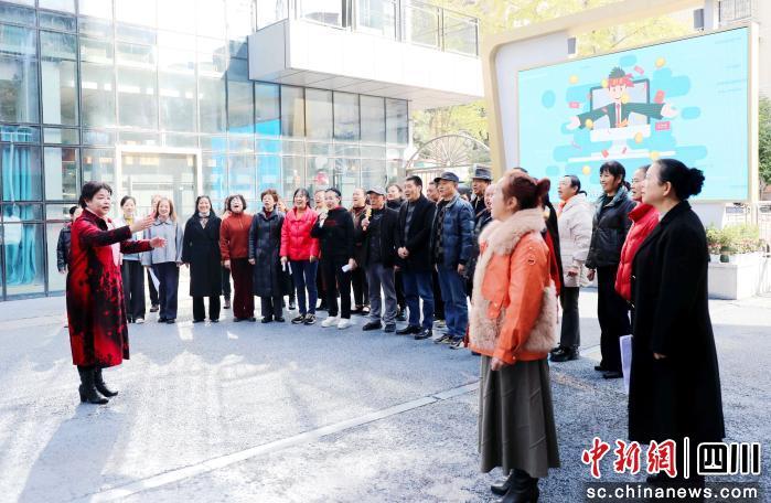 中新网四川新闻11月25日电 (汪静 刘健)“一片白云飘过,美丽的香巴拉……”11月25日上午十点,泸州市龙马潭区莲花池街道龙祥社区里,72岁的蔡筱敏正带着“龙祥艺术团”放声高歌。30多位团员精神抖擞,歌声在社区综合服务中心回荡,开启了蔡筱敏充实而惬意的一天。
