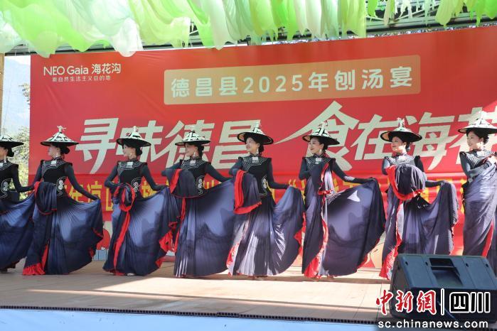 活动以“寻味德昌食在海花”为主题,精心设计了一系列沉浸式体验环节。当日10时,在室外舞台上,人们遵循古老年俗举行“杀年猪”仪式,由德高望重的长者诵念吉祥话语,祈愿来年风调雨顺、家宅安康,为活动注入了浓厚的传统节庆氛围。紧随其后的文艺汇演,凉山州歌舞团“送戏下乡”,以特色歌舞与民乐演奏,在冬日暖阳下传递着民族文化的灵动与热情。