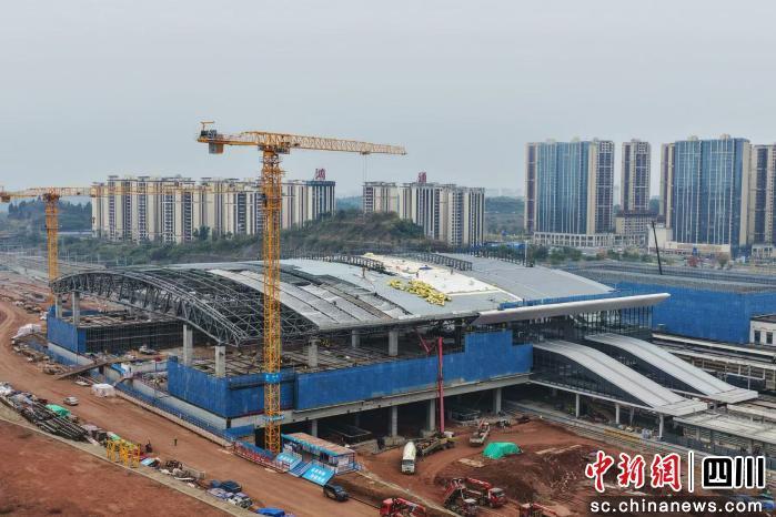 中新网四川新闻12月10日电 (万家利)南充北站改扩建工程作为成达万高铁全线关键控制性节点,眼下正进入攻坚冲刺阶段。走进施工现场内,新建的白色高架站房气势已然显现,施工团队在严守安全底线、严控工程质量的前提下,同步推进屋顶面板、保温层、玻璃幕墙安装及商业夹层施工,全力抢占建设进度。