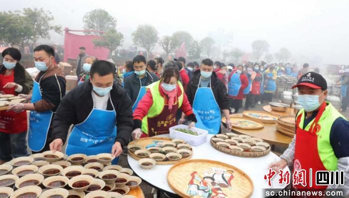 中新网四川新闻1月18日电(吴平华 姚阳 孙小红)17日,晨雾未散,炉火先红。在资阳市乐至县高寺镇清水村,“秋千王国”停车场上炊烟袅袅。几口大锅沿场排开,水滚肉香,白雾蒸腾。系着围裙的师傅们麻利地切肉、下锅,游客举着手机簇拥记录,孩子们纷纷踮脚围观。一场连续两天,每日400桌、宴请4000人的“共富宴”,在这热气腾腾中开场。这场盛宴由清水村村集体经济组织与乐欢天农业开发有限公司联手操办,全部免费。这不止是一场团年饭,更是乐至乡村振兴中一份特别的温情。