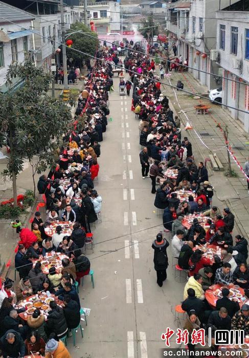 中新网四川新闻2月1日电 (罗涛 简巧)近日,德阳市旌阳区黄许镇东泰村开展了一场充满乡土气息的迎新春民俗文化活动。其中,最具人气的“东泰坝坝宴——杀年猪”环节,以114桌规模、上千村民共聚的热闹场面,将新春团圆氛围推向高潮,成为本地年俗文化传承的生动缩影。