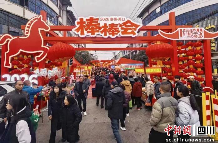 中新网四川新闻2月18日电 17日是正月初一,2026彭州关口棒棒会暨“小火车嘉年华”正式启幕。今年的“新版”棒棒会举办地点从南郡东西街、建设路一带“老窝子”扩展至丹景山镇全域,形成了“景镇一体,全域托举”的热闹场面,迎接八方来客前来体验“彭派”年味。