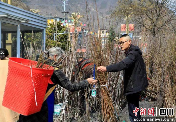 中新网四川新闻3月11日电 (黄强 刘通)近日,阿坝州茂县各地苗木集中上市,市场迎来购销两旺的繁忙季节,广大种植户抢抓农时,积极选购优质种苗,为春季林果生产打下坚实基础。