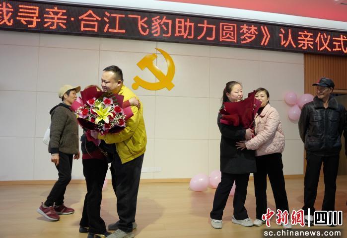 中新网四川新闻3月25日电 (王易 张漫游 尚裕滨)3月25日上午,泸州市合江县荔城社区服务中心内温情满溢,一场跨越山东、四川两地,时隔四十年的认亲仪式在此举行。当山东的刘玉国、燕金平夫妇与合江的亲人相见,紧紧相拥的瞬间,让在场所有人为之动容,这场迟到了四十年的团聚,终于圆满实现。