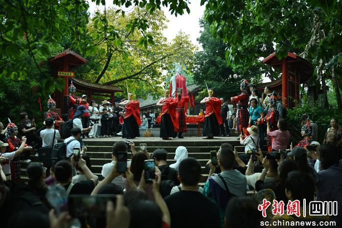 彭祖山景区山门处,“寿乡百姓大舞台”率先亮相,歌舞、曲艺等节目轮番上演,生动展现了彭山寿乡的人文风情,精彩的表演赢得现场观众阵阵喝彩。