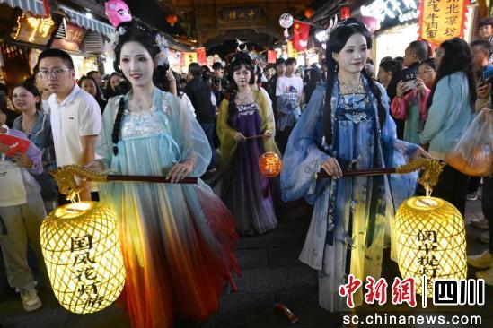古城内将重现古代市井烟火气。身着汉服的“商贩”穿梭于古城街巷,吆喝叫卖保宁蒸馍、糖画、叮叮糖等美食,营造穿越般的游园氛围。在南津关,每日开展舞蹈、唱歌、互动游戏等表演,安排“嫦娥散花”NPC互动环节,为游客构筑浪漫的节日幻境。