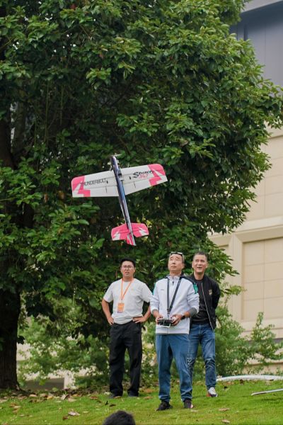 开幕式上,全国锦标赛花式编队飞行冠军带来的航空模型双机编队拉烟表演惊艳全场。两架航模飞机在成都市新津区天府农博科旺水上运动中心的上空灵活穿梭,拉出绚丽彩带,与下方波光粼粼的水面交相辉映,生动诠释了本次活动“体育+科技”的融合理念 ,彰显出成都在青少年科技体育领域的创新探索与积极实践 。