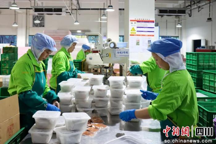 在四川品品食品有限公司(以下简称品品食品),生产、销售同样繁忙。走进企业冷吃包装车间,机器运转的嗡鸣声此起彼伏,工人们身着统一工装,熟练地将冷吃千层肚、冷吃牛板筋等产品分拣、装箱,每一道工序都有条不紊。打包好的包裹整齐堆叠在发货区,即将通过物流发往全国各地。