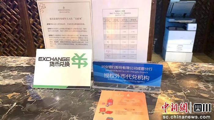 为了满足境外人士对即时现金兑换需求,成都分行精准布局,在市内4家游客集中下榻酒店大堂设立外币代兑点并随点配备经验丰富的服务人员,现场支持美元、欧元、英镑等主流货币与人民币兑换,满足不同国家游客的便捷兑换需求。
