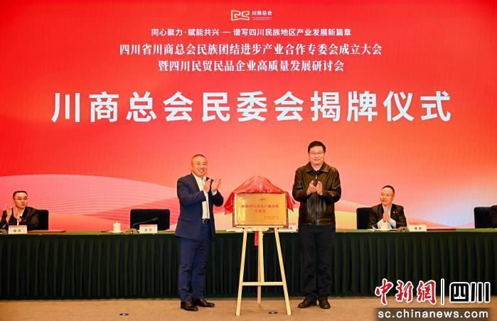 中新网四川新闻11月6日电(王欢)5日下午,四川省川商总会民族团结进步产业合作专委会(简称“川商总会民委会”)成立大会暨四川民贸民品企业高质量发展研讨会在成都举行。本次会议以“同心聚力·赋能共兴”为主题,团结凝聚川商企业共话四川民贸民品发展大计,共谱四川民族地区产业发展新篇章。
